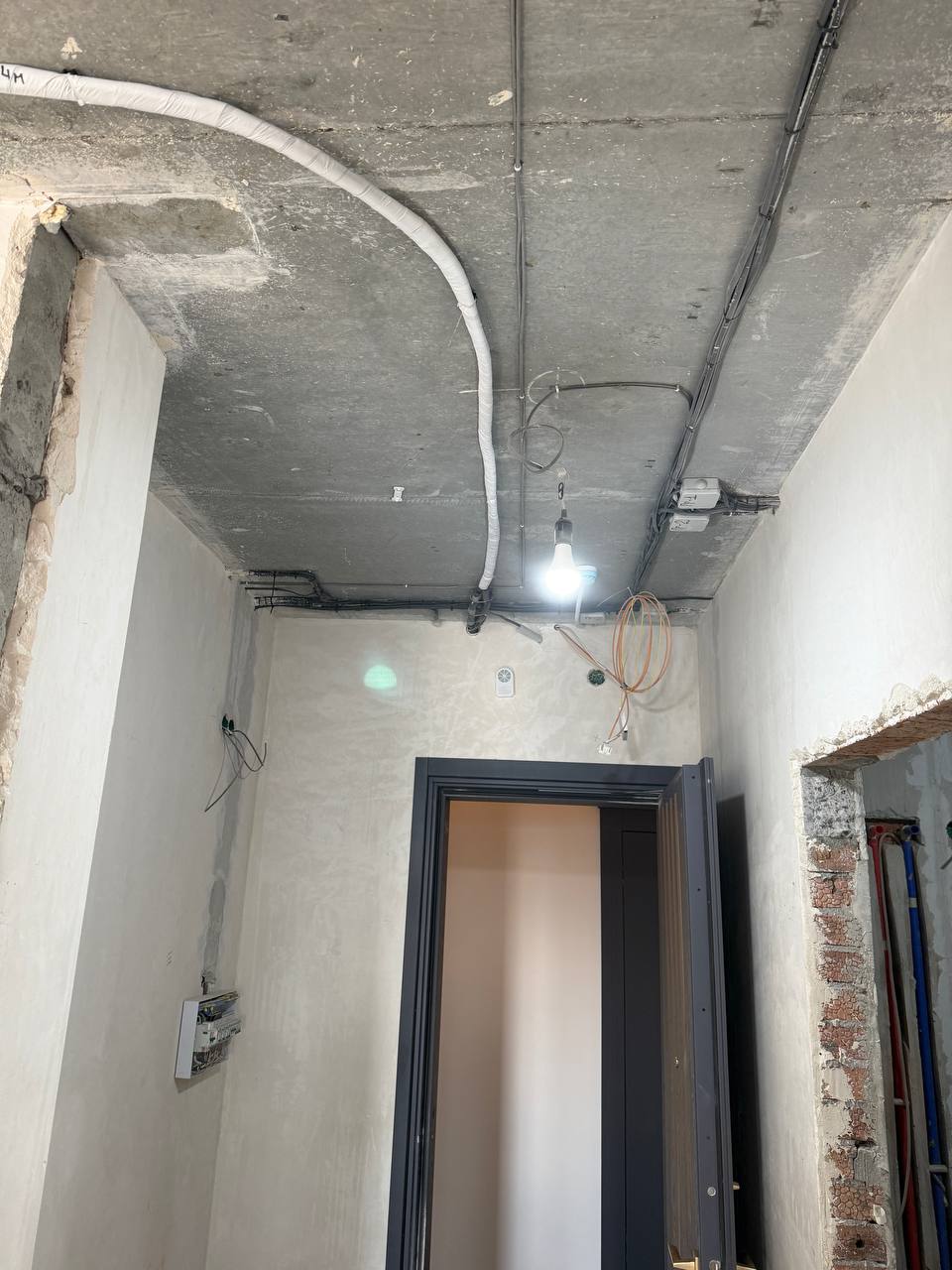 Монтаж осуществляли опытные специалисты компании — Алексей и Андрей, которые выполнили полный комплекс работ по прокладке магистрали под кондиционер, включая наращивание существующих труб от застройщика, подготовку трассы для установки оборудования и монтаж дренажной системы для отвода конденсата.