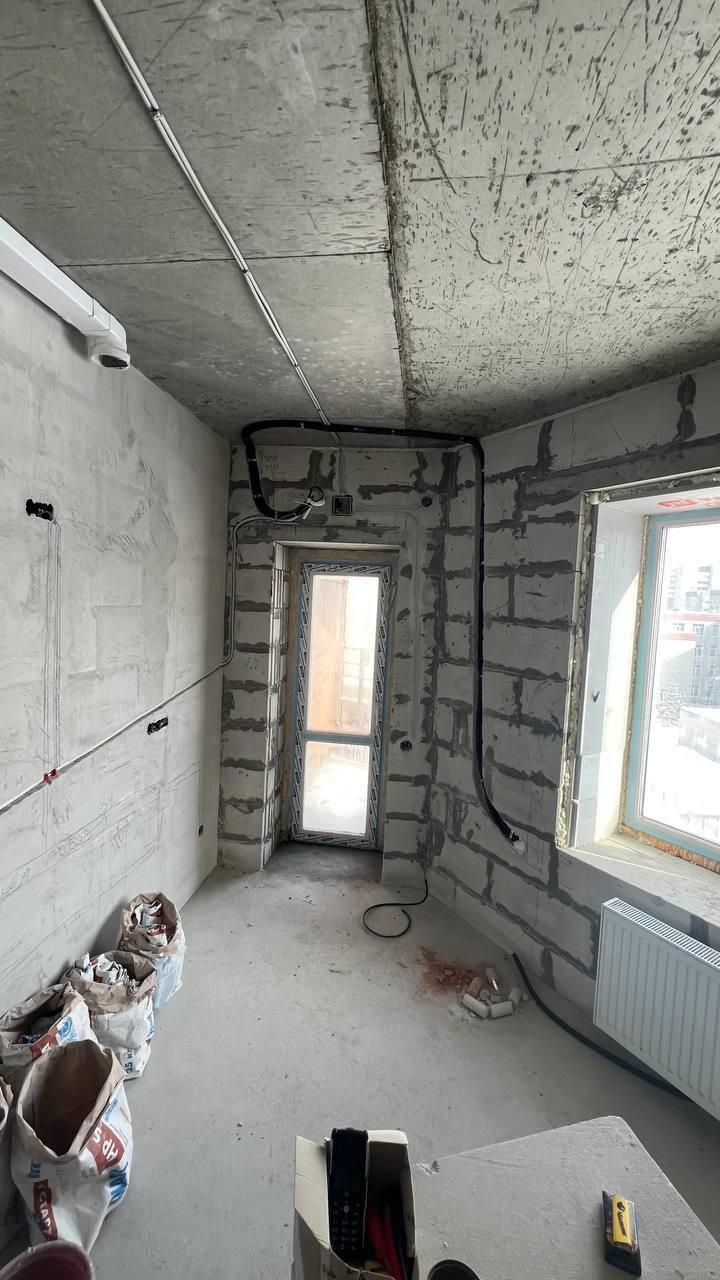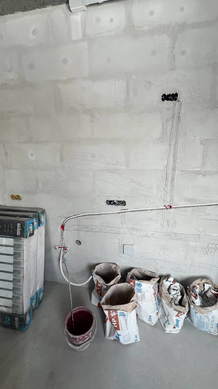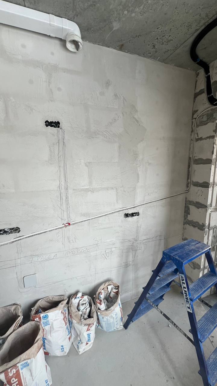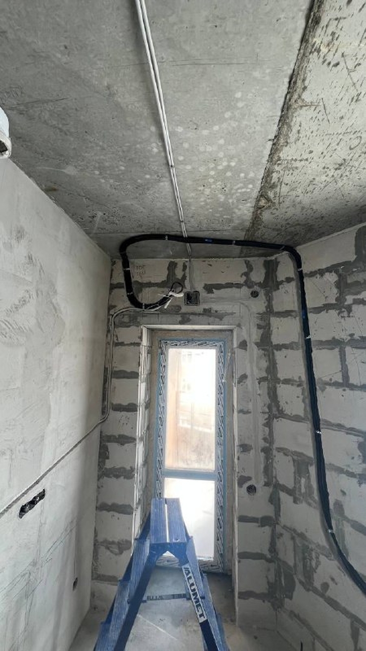 Все коммуникации были аккуратно уложены и подготовлены для последующей чистовой отделки, чтобы после завершения ремонта установка кондиционера прошла быстро и без лишних строительных работ.